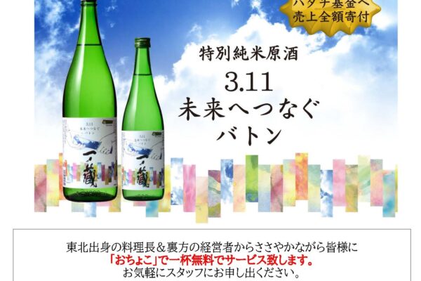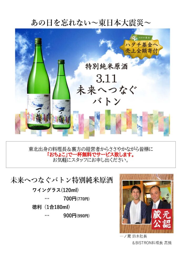 一ノ蔵・蔵元公認『特別純米原酒 3.11未来へつなぐバトン』
